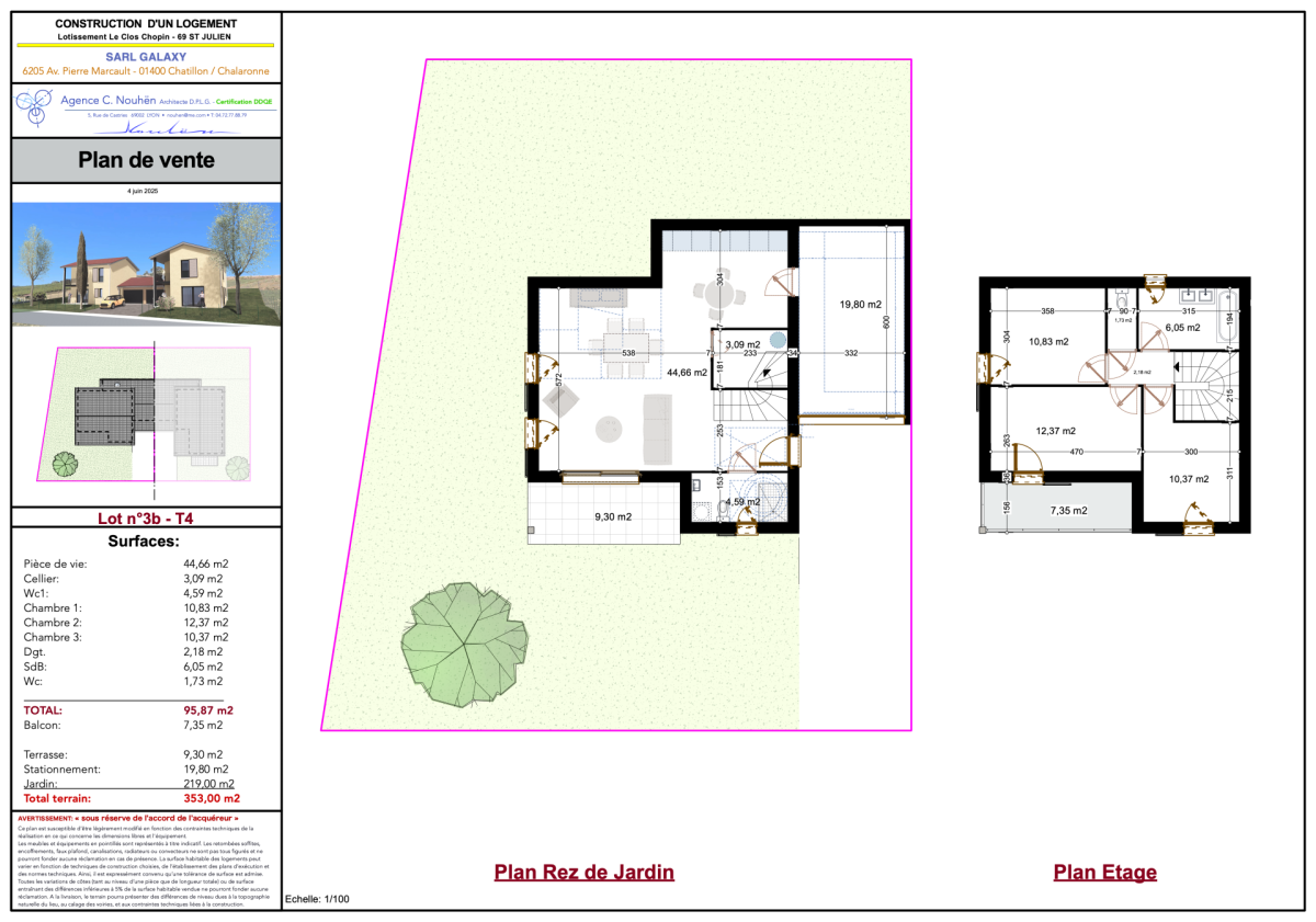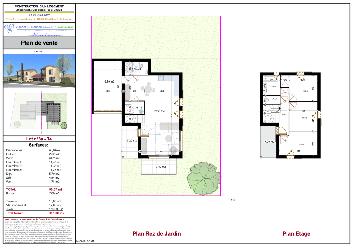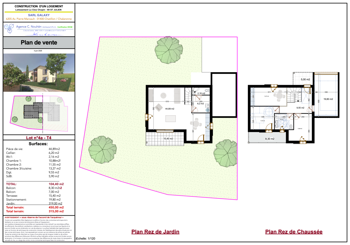 Nous vous proposons à la vente 4 villas avec 3 chb, d’une surface habitable allant de 95 à 104 m² environ, disposant d’un garage et d’un jardin privatif allant de 315 m² à 450 m².